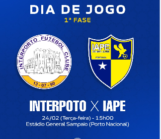 Interporto e IAPE (MA) empataram em 1 x 1 no tempo regulamentar do jogo único da Copa do Brasil Sub-17, disputado na tarde desta terça-feira (24), no Estádio General Sampaio, em Porto Nacional. Na dis...