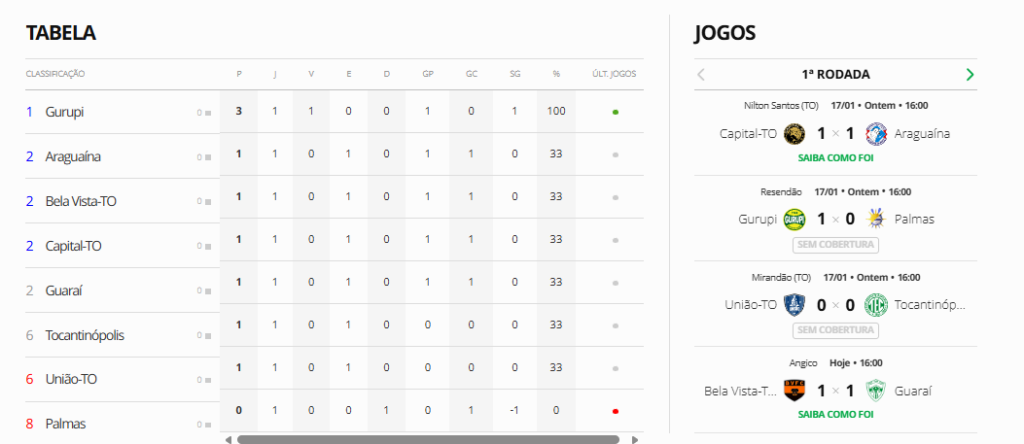 A rodada de abertura do Campeonato Tocantinense começou no sábado (17) e teve os seguintes resultados: