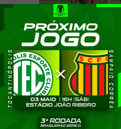 Jogando em casa, no Estádio Ribeirão, em Tocantinópolis, o TEC busca sua primeira vitória no Campeonato Brasileiro da Série D. O desafio será neste sábado (3), às 16 horas, contra o Sampaio Corrêa (MA...