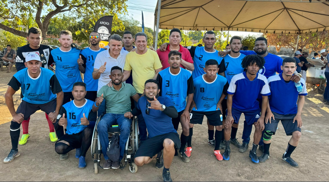 O deputado estadual Léo Barbosa (Republicanos), acompanhado do presidente interino da Fundação Municipal de Esportes e Lazer de Palmas (Fundesportes), Sérgio Vieira Marques, o Soró, e do secretário de...