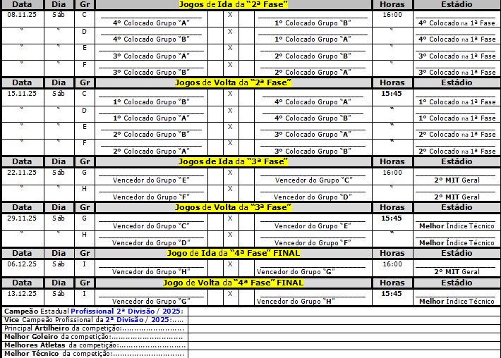 TABELA DO ESTADUAL DA SEGUNDA DIVISÃO