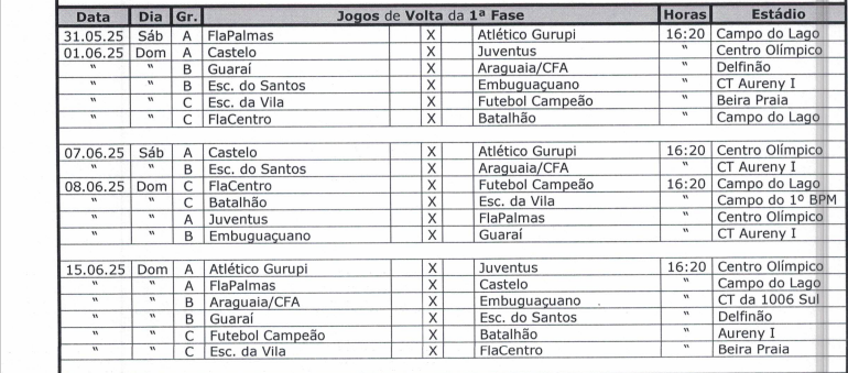 Grupo A: Associação Esportes Juventus, Clube Atlético Gurupi, Castelo e Clube de Regatas FlaPalmas