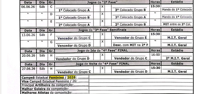 CONFIRA A TABELA E REGULAMENTO DO ESTADUAL FEMININO 2026