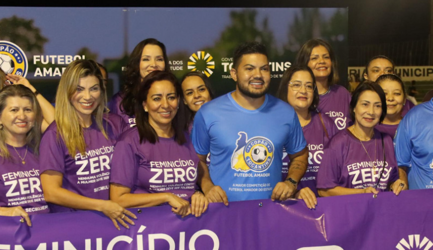 O Governo do Estado do Tocantins, por meio da Secretaria de Estado da Mulher (SecMulher), lançou neste sábado, 29, a campanha pelo Feminicídio Zero. A iniciativa ocorreu durante a abertura da 4ª edição do Copão Tocantins de Futebol Amador, evento promovido pela Secretaria de Estado dos Esportes e Juventude (Seju). A partida inaugural contou com a vitória do atual campeão, Íbis Esporte Clube, sobre a equipe do Rigor City Futebol Clube, pelo placar de 3 a 2.