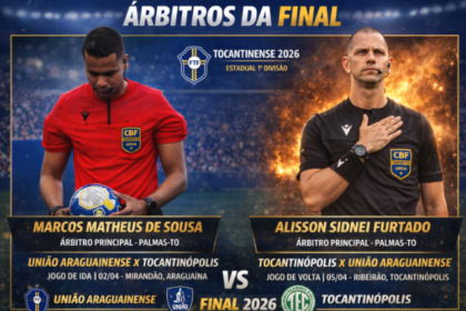 Marcos Mateus de Souza será o árbitro da partida de ida da final entre União Araguainense e Tocantinópolis, marcada para o dia 2 de abril, em Araguaína. Já Alisson Furtado comandará o jogo de volta en...