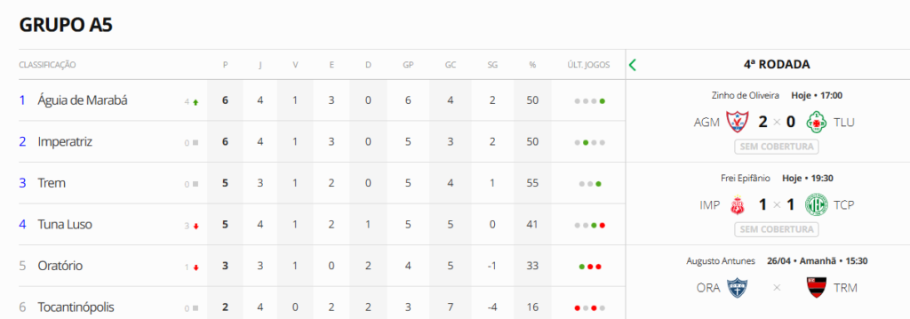 Com o resultado, o Imperatriz sobe para a segunda colocação do Grupo A5, com seis pontos. Já o Tocantinópolis segue na última posição, somando dois pontos na competição.